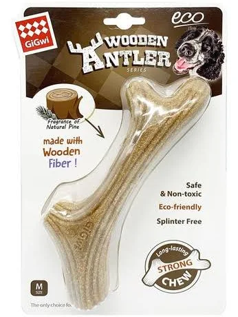 GIGWI WOODEN ANTLER Inspirado en la naturaleza, un hueso de perro ecológico a base de madera para masticadores fuertes. ¡Sin astillas! Las astas masticables naturales para perros de GiGwi son un juguete de hueso de madera ecológico y duradero para masticadores fuertes. Inspirándose en la naturaleza, están fabricados con material PP apto para uso alimentario y pino ecológico. La madera natural combinada con los relieves elevados de los juguetes actúan para crear fricción mientras su perro mastica y ayuda a limpiar los dientes de su mascota y refrescar su aliento. La cornamenta de madera es una excelente alternativa segura a los palos, ya que no se astillan y no dañan las encías de su mascota. Pueden soportar horas de masticación con las mandíbulas más poderosas, lo que los hace excelentes para reducir el aburrimiento y aliviar la ansiedad.